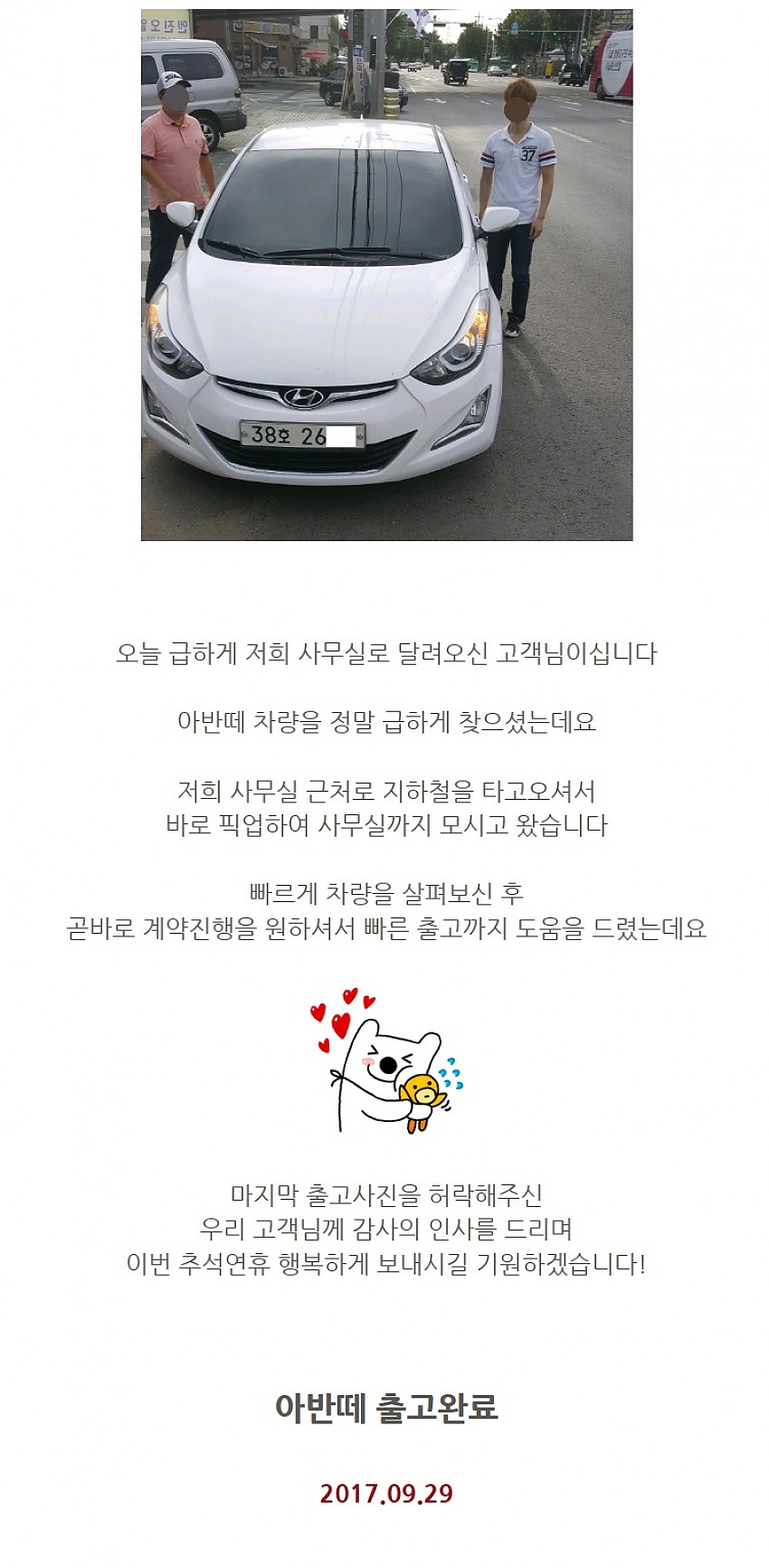 [아반떼] 2017.09.29 출고 > 출고사진